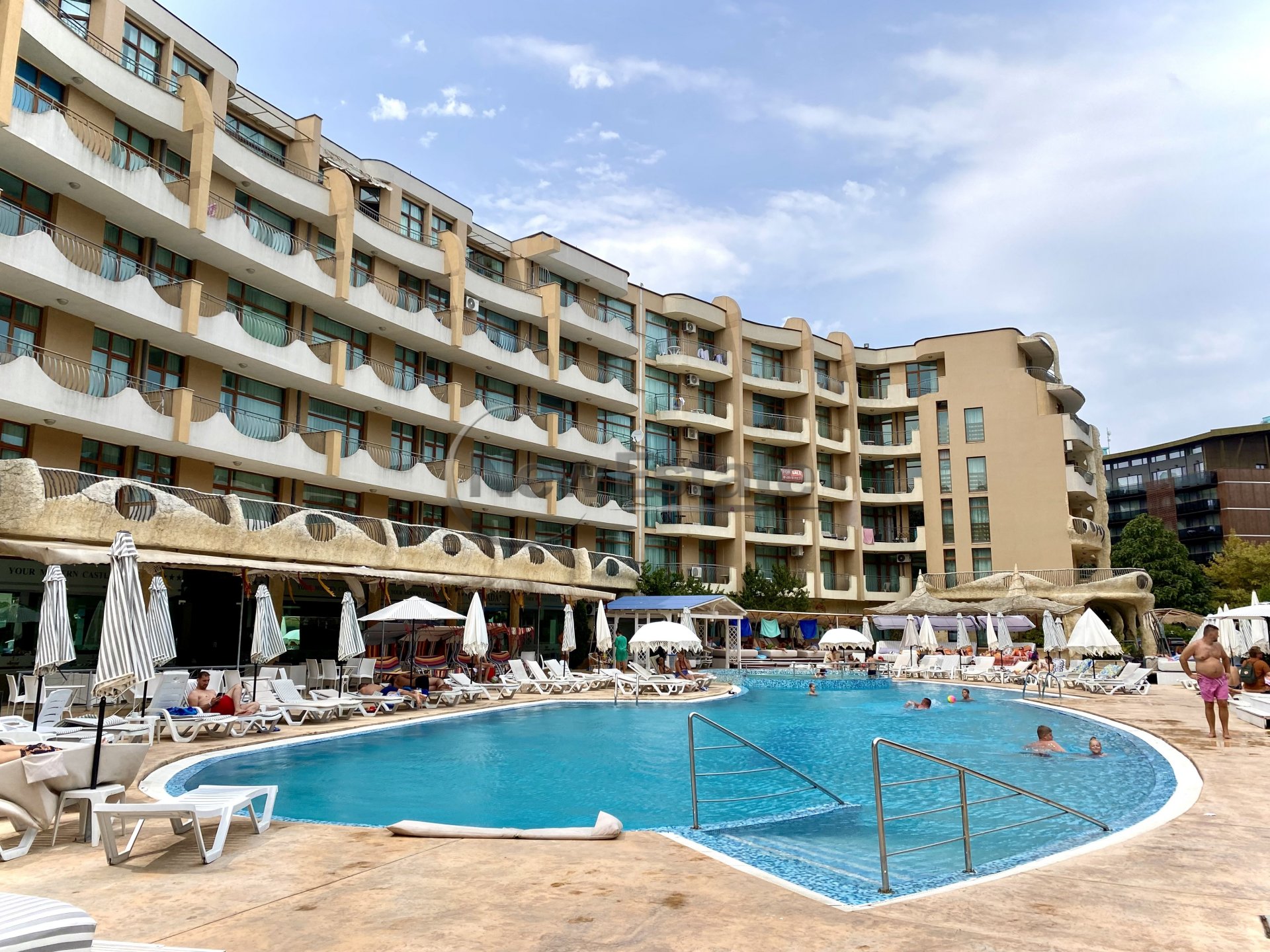 Een 95m² groot appartement in Sunny Beach tegen Nesebar aan met 2 slaapkamers en een gezamenlijk zwembad welk een onderdeel is van een hotel. Dit appartement kost E69.500,--